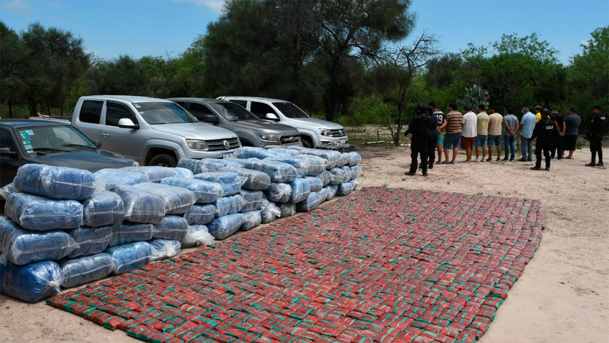 El procedimiento tuvo lugar sobre la Ruta Nacional 34, en la localidad de Lugones. Secuestraron más de un millón de pesos y 2718 kilos de hojas de coca.