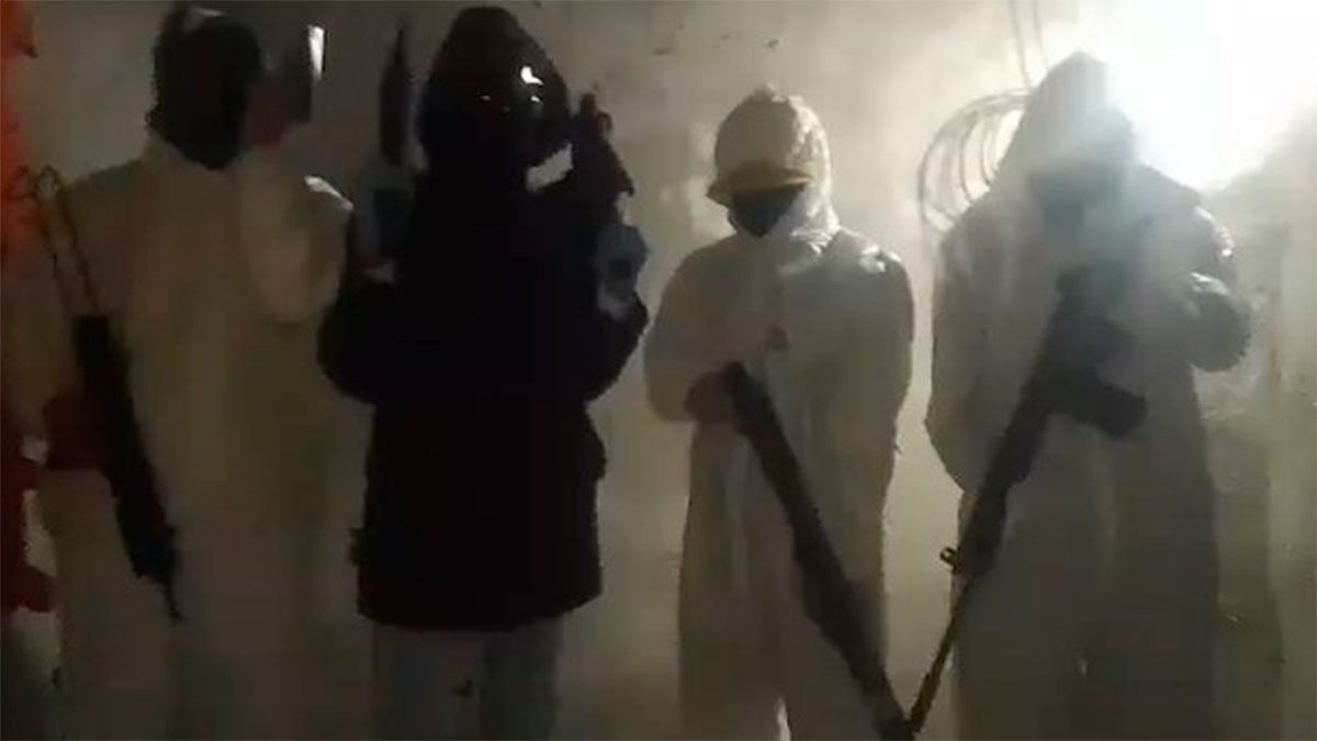 Son cuatro hombres con sus caras cubiertas y que manipulan una cantidad de armamento que es investigado tanto por los ministerios de Seguridad como por los servicios de inteligencia abocados al accionar criminal.