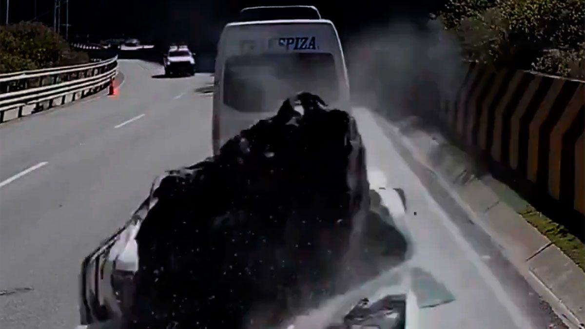 En la grabación, publicada en redes sociales, primero se ven dos vehículos blancos, una camioneta Toyota Hilux y una Vans, estacionadas en la ruta mientras otros vehículos se movilizaban en sentido contrario. Entonces el video transcurre normalmente. Pero tras ello, una roca gigante cae desde el cerro a gran velocidad y se dirige en dirección la cabina de la camioneta. Luego llega el impacto, razón por la que el auto quedó completamente destruido y luego volcó.