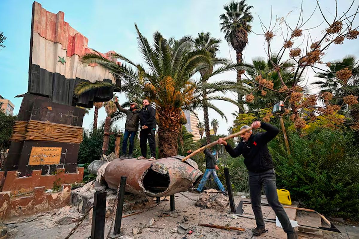 El líder islamista de la coalición rebelde, Abu Mohamed al Jolani según su nombre de guerra, llegó el domingo a Damasco y se dirigió a la célebre mezquita de los Omeyas donde pronunció un discurso. Decenas de personas salieron a las calles, según imágenes de la señal local AFPTV, para celebrar la caída del gobierno. Imágenes mostraron personas pisoteando estatuas de Al-Assad, el padre de Bashar.