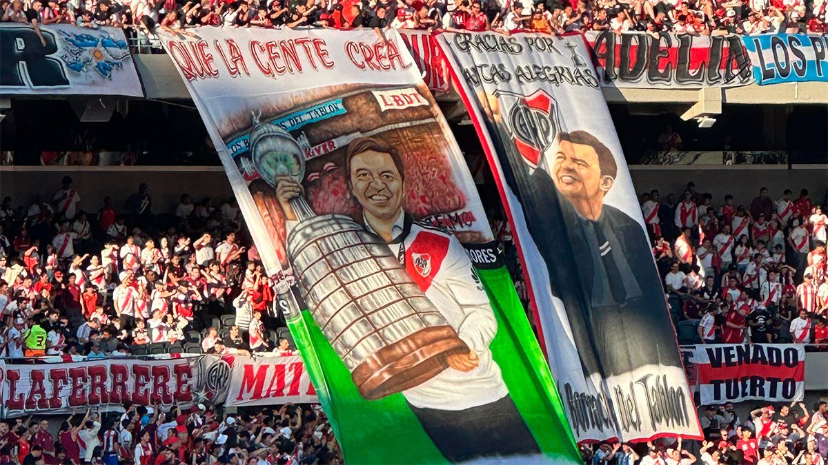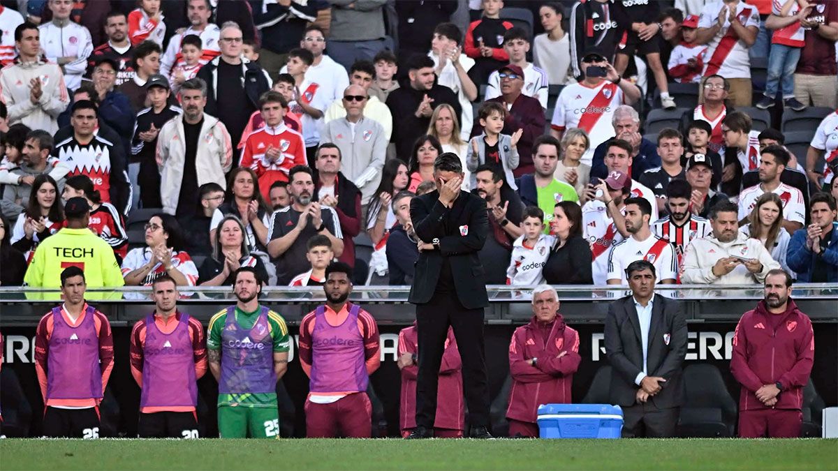 Luego del fallecimiento de Máximo, los hinchas lo aplaudieron cuando fue nombrado por la voz del Monumental y le dedicaron una bandera. En el minuto de silencio, el Muñeco no contuvo las lágrimas.