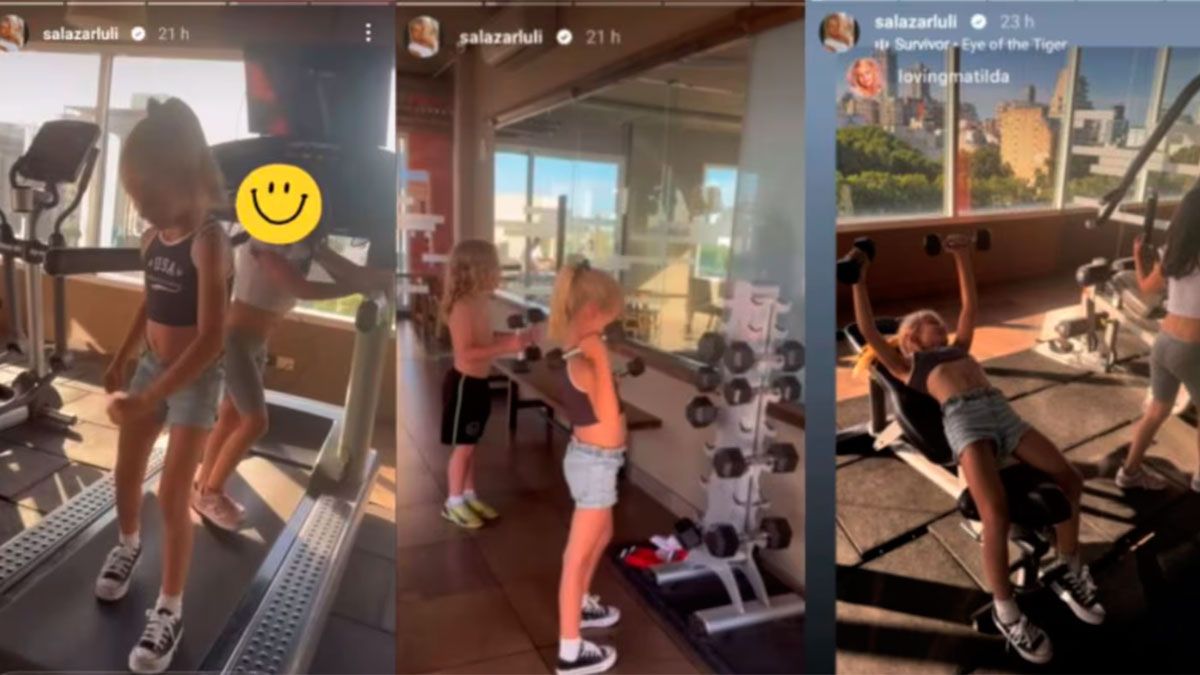En las historias que la conductora subió a su Instagram, Matilda se encontraba caminando en una cita junto a una amiga, haciendo ejercicio con unas pesas y acostada en un banco levantando mancuernas. “Jajaja mi mamá un poroto al lado mío”, escribió Luciana en uno de los posteos.