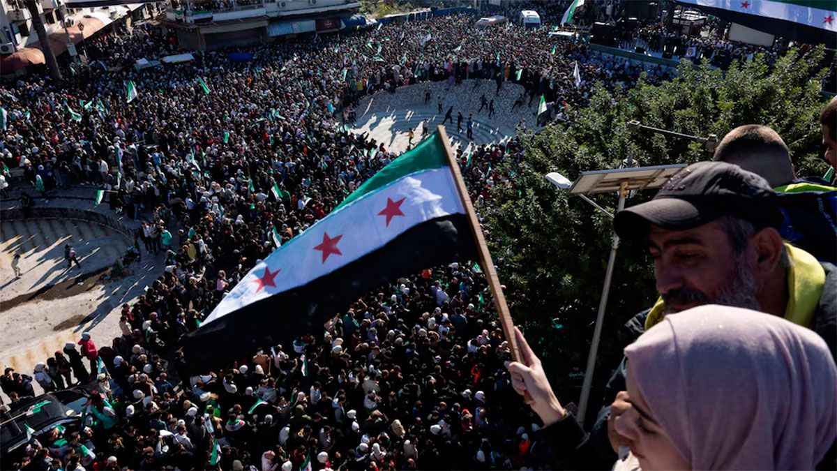Los participantes gritaron consignas como “Uno, uno, uno, el pueblo sirio unido” y “La victoria para la voluntad de los pueblos”, y portaron réplicas de la nueva bandera siria, que hasta el pasado domingo representaba a la oposición del país.