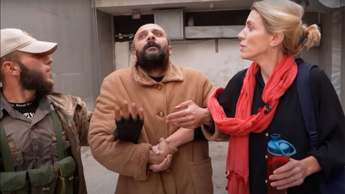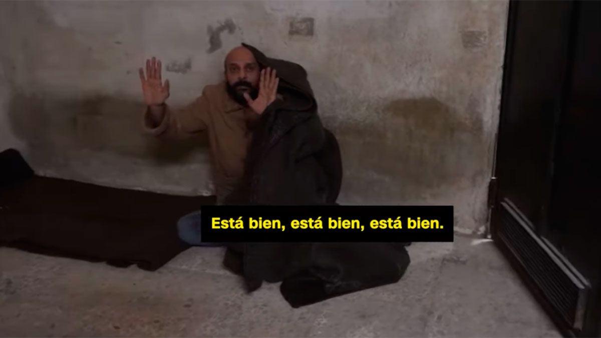 Mientras que avanzaban por una prisión, encontraron un bulto en el suelo, oculto debajo de una cobija. “¿Hay alguien ahí?”, preguntó la periodista. En cuanto el rebelde tocó el bulto, se asomó un hombre que al verlos, entró en pánico. “¡Soy un civil!”, repetía en su idioma y levantaba las manos.