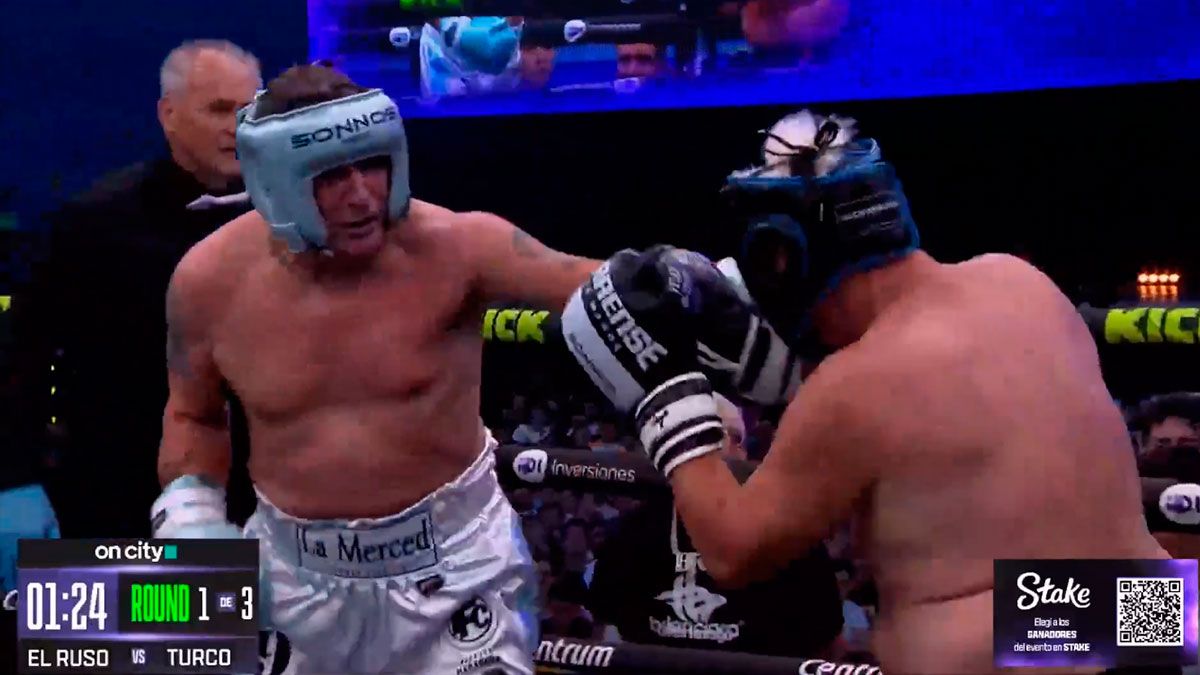 Cuando el reloj marcaba que iba 1.46 de pelea, el Turco conectó un derechazo que lo dejó en la lona al Ruso y desde el rincón tiraron la toalla. Así, el exfutbolista de Racing se consagró ganador del combate.