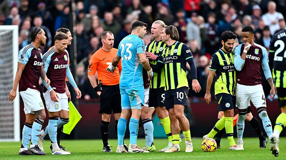El equipo dirigido por Unai Emery se adelantó en el marcador con un gol del colombiano Jhon Durán en la primera mitad. Al finalizar ese período, cuando los jugadores se dirigían al vestuario, se produjo un cruce verbal entre el arquero campeón del mundo en Qatar 2022, Grealish y Haaland.