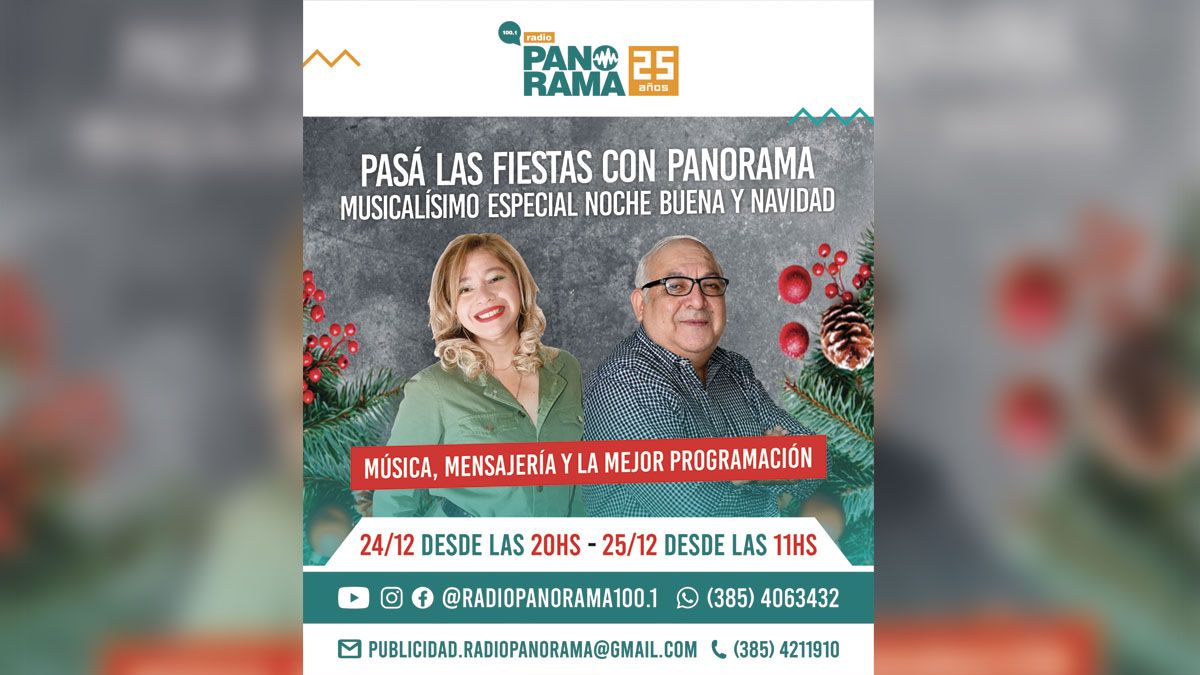 Radio Panorama, la emisora líder en Santiago del Estero, invita a todos sus oyentes a disfrutar de un programa especial titulado “Musicalísimo Especial Nochebuena y Navidad”, con la conducción de Willy Ocaranza. Este evento único promete acompañar las celebraciones navideñas con música, mensajería y una selección de la mejor programación.