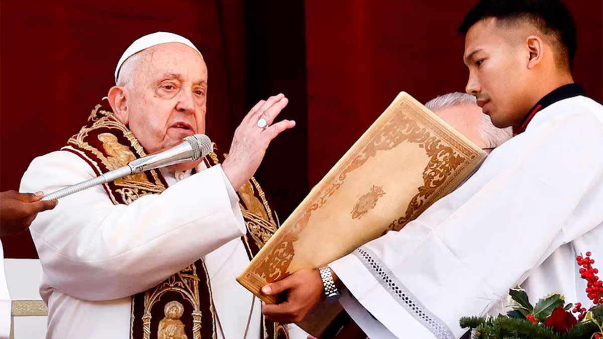 El papa Francisco pidió este miércoles en su mensaje de Navidad que callen las armas en Ucrania y se “tenga la audacia de abrir negociaciones para una paz justa” y que en Gaza “cese el fuego, que se liberen los rehenes y se ayude a la población extenuada por el hambre y la guerra”.