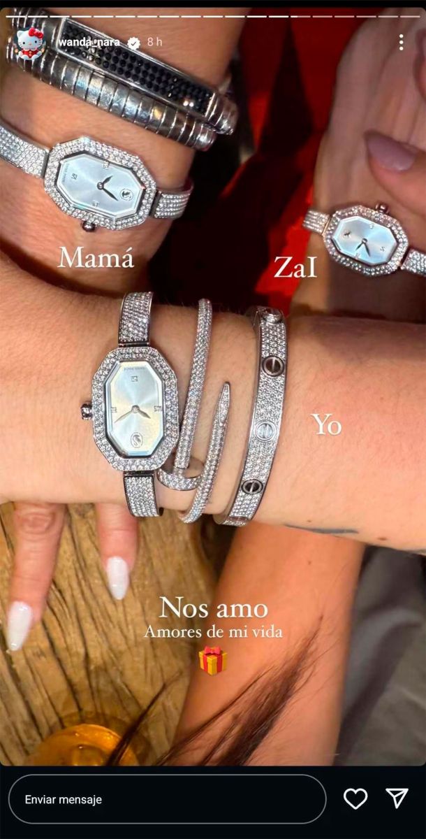 “Nos amo, amores de mi vida”, escribió la ex de Mauro Icardi en la foto que publicó en Instagram. Allí se podían ver los exclusivos relojes suizos que llevaban puestos tanto ella como su mamá y su hermana.