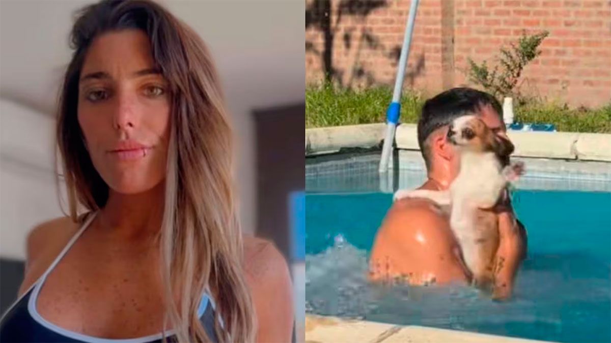 La médica pediatra compartió el video en sus historias de Instagram. Allí se lo podía ver a Joel Ojeda que se sumergió en el agua mientras sostenía a la mascota en sus brazos.