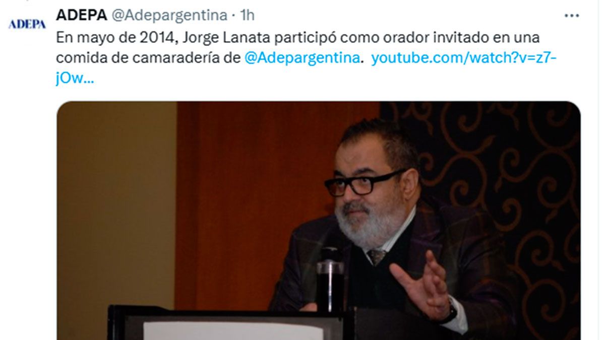 La Asociación de Entidades Periodísticas Argentinas (ADEPA) lamentó la muerte de Jorge Lanata. A través de las redes sociales, destacó su labor y envío condolencias a la familia.