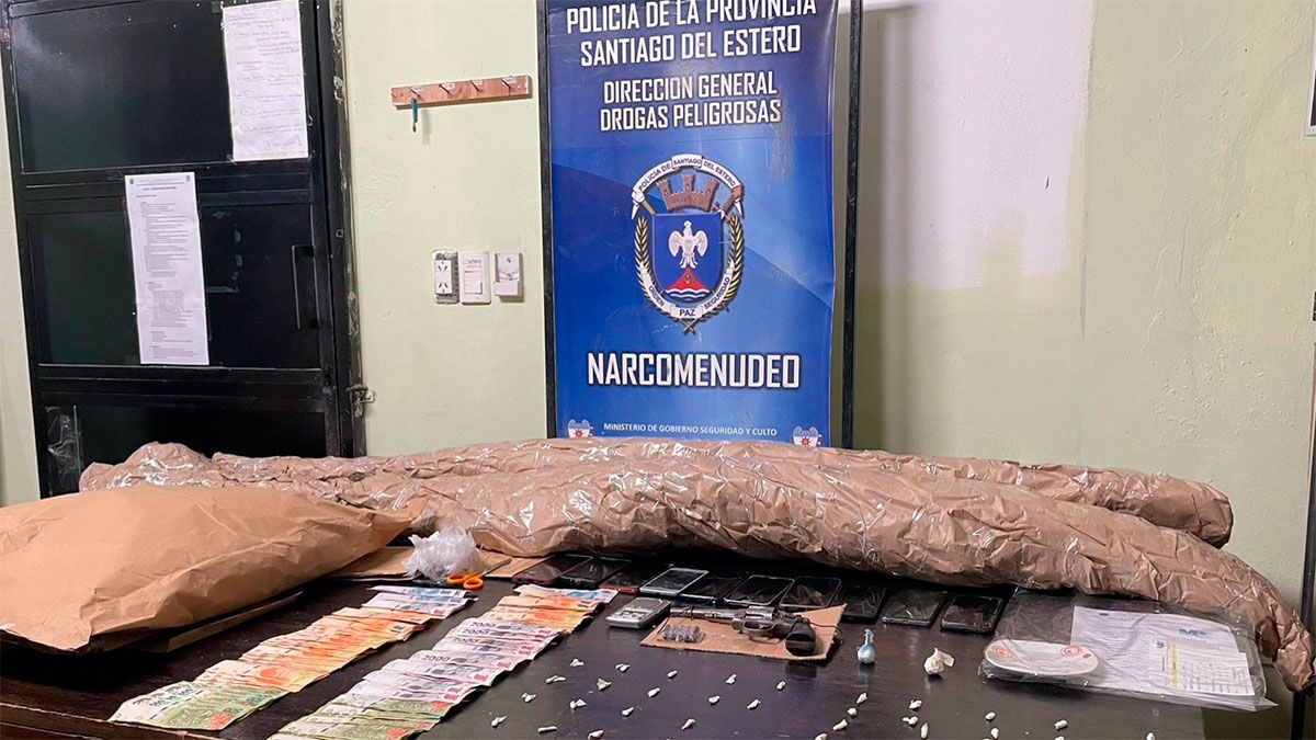 También se incautaron $357.300 en efectivo, diez teléfonos celulares, una balanza digital, tijeras, recortes de nylon, y utensilios con restos de cocaína. Además, se halló un revólver calibre 38 junto con cinco cartuchos.