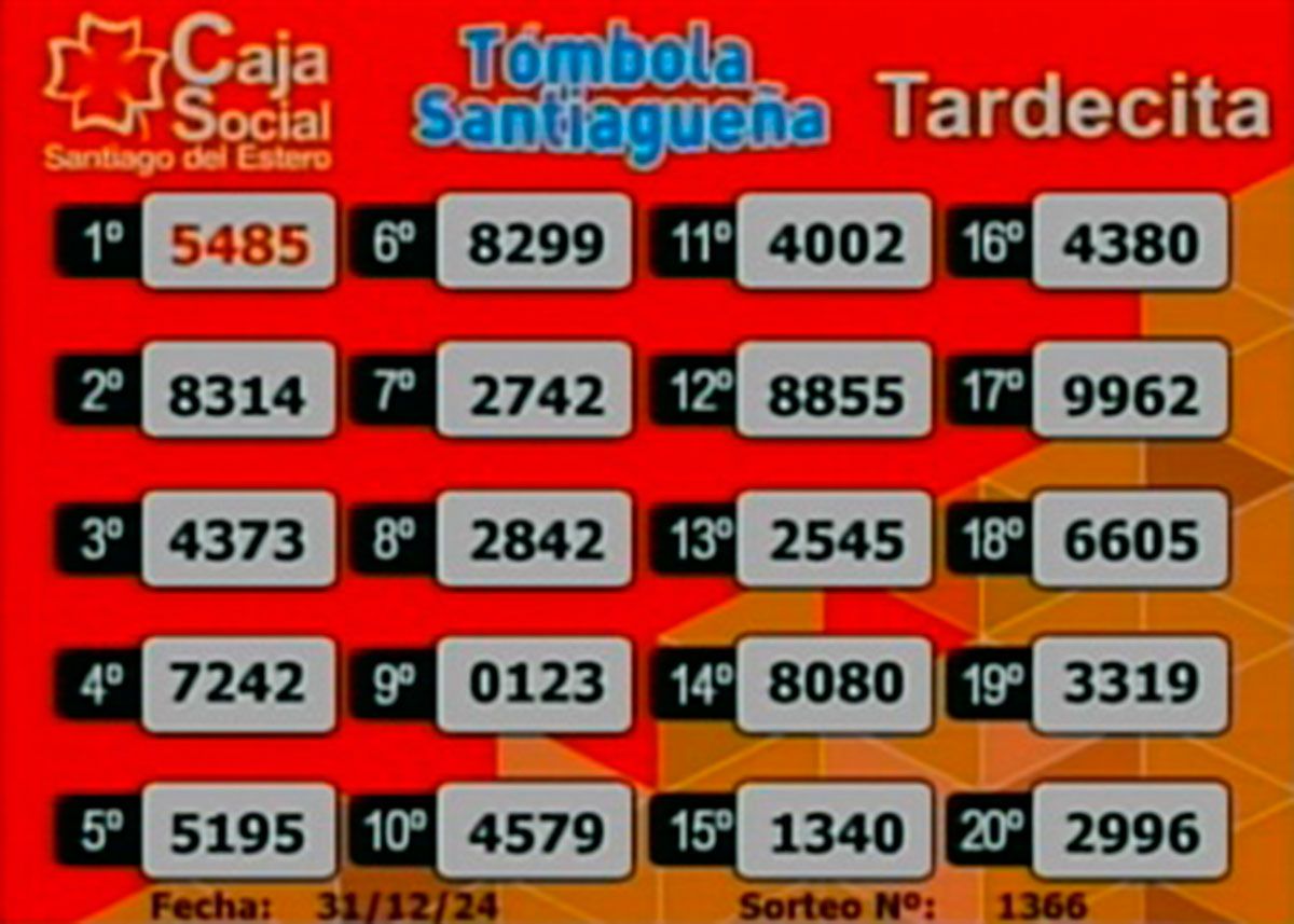 Este martes 31 de diciembre del 2024, como todos los días, se llevó a cabo un nuevo sorteo de la Tómbola Santiagueña.