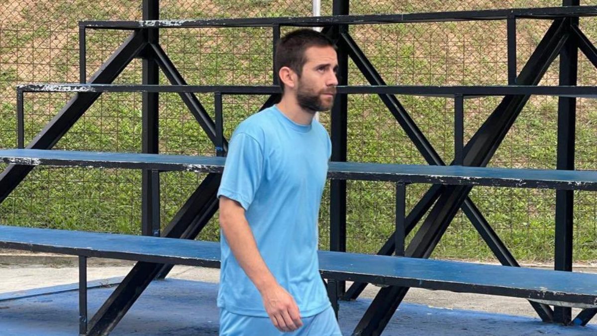 En un video, el gendarme argentino se muestra en un patio, usando uniforme celeste. Lleva detenido desde el 8 de diciembre y su familia sigue sin poder visitarlo.