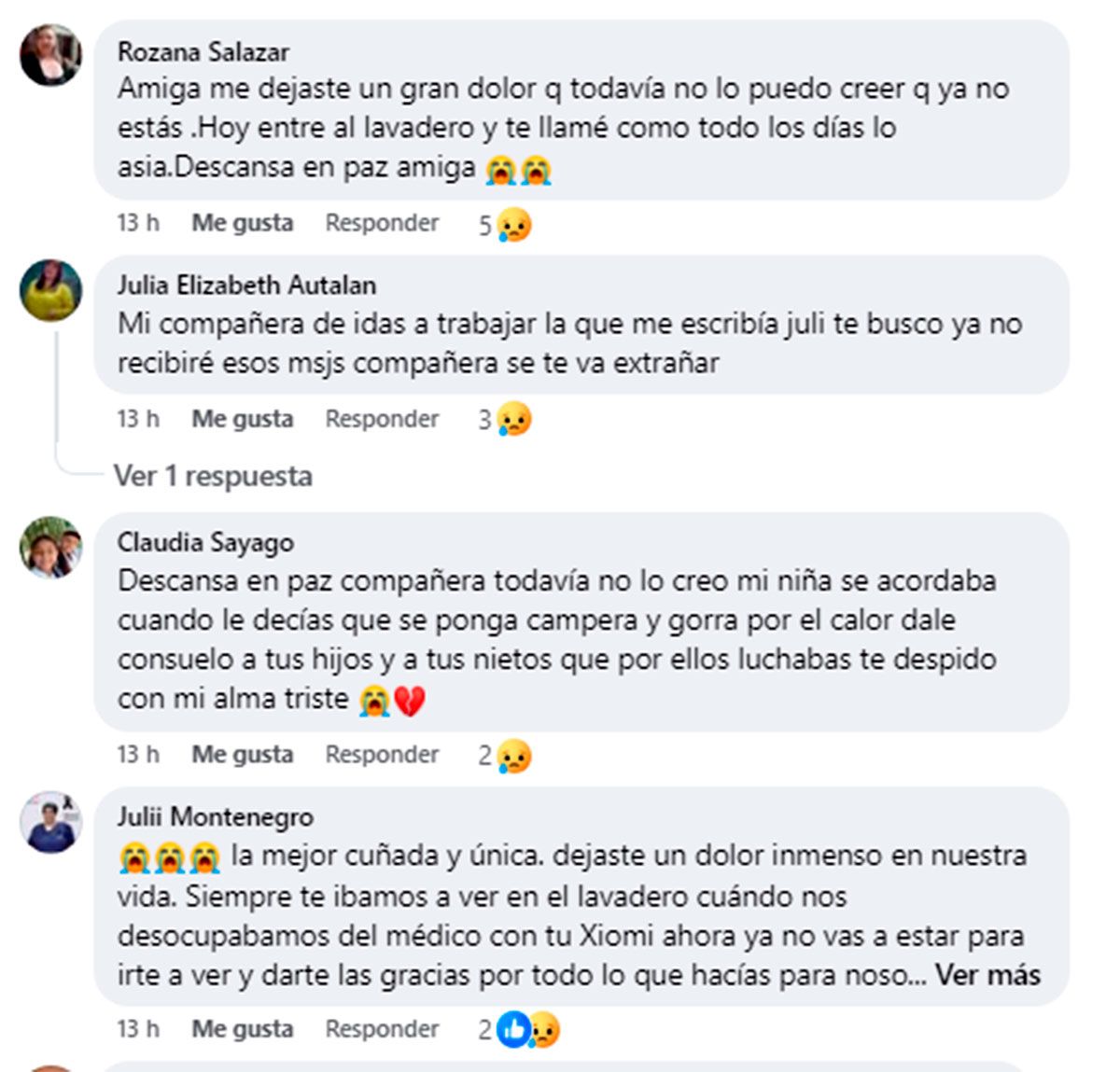 "Era una persona trabajadora, luchadora y excelente compañera. Siempre vivirás en cada uno de nosotros. Qué brille para ti la luz que no tiene fin, y que Dios dé consuelo a tu familia. QEPD", expresaron en un emotivo mensaje en su página de Facebook.