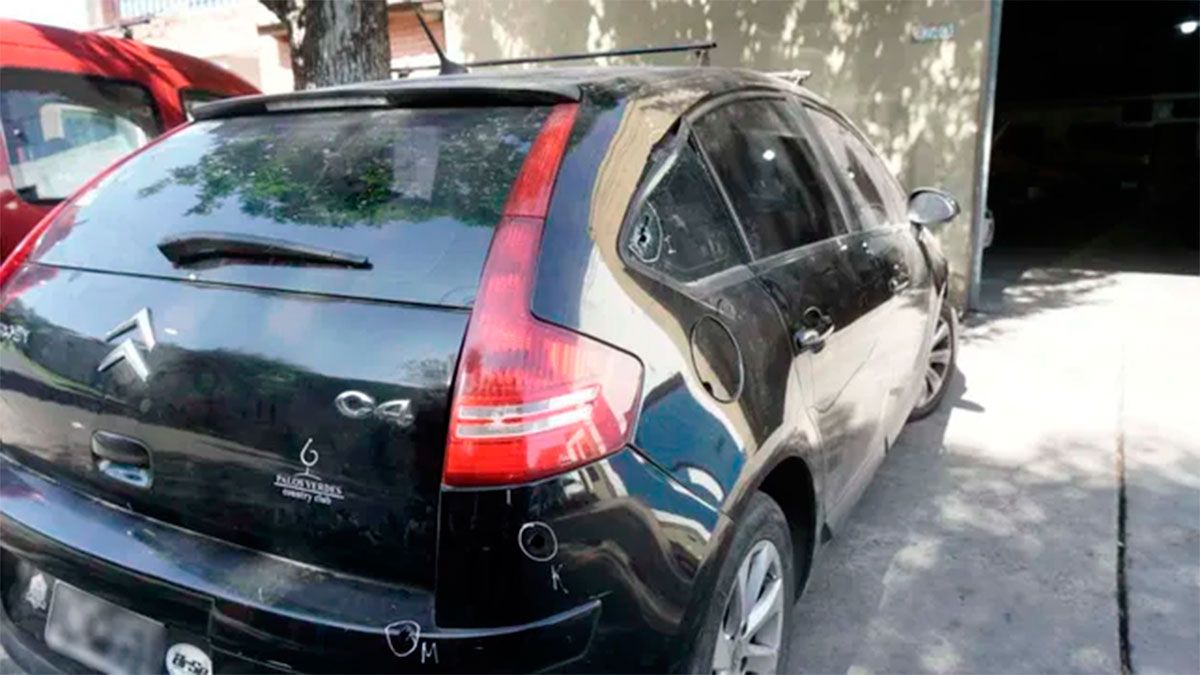Sobre el portón del taller la policía identificó al menos ocho disparos, mientras que en el vehículo particular otros tres orificios de bala, uno de ellos sobre un vidrio trasero del acompañante. Además, un Citroen C3 que se encontraba dentro del taller recibió otros 4 disparos.
