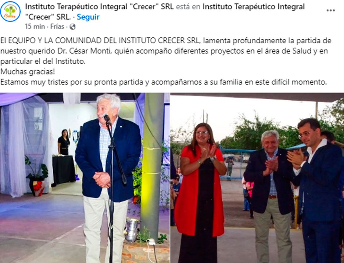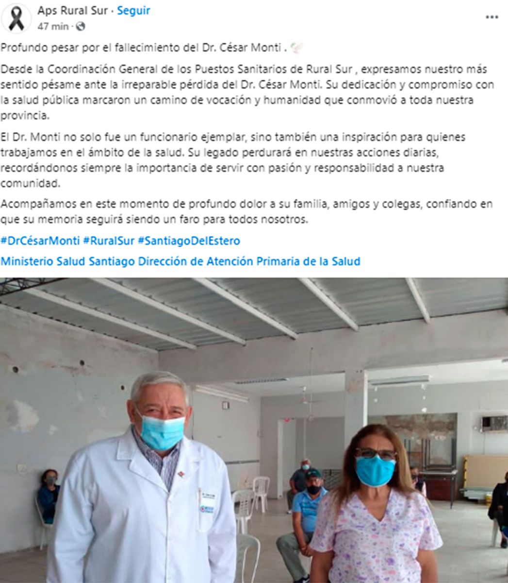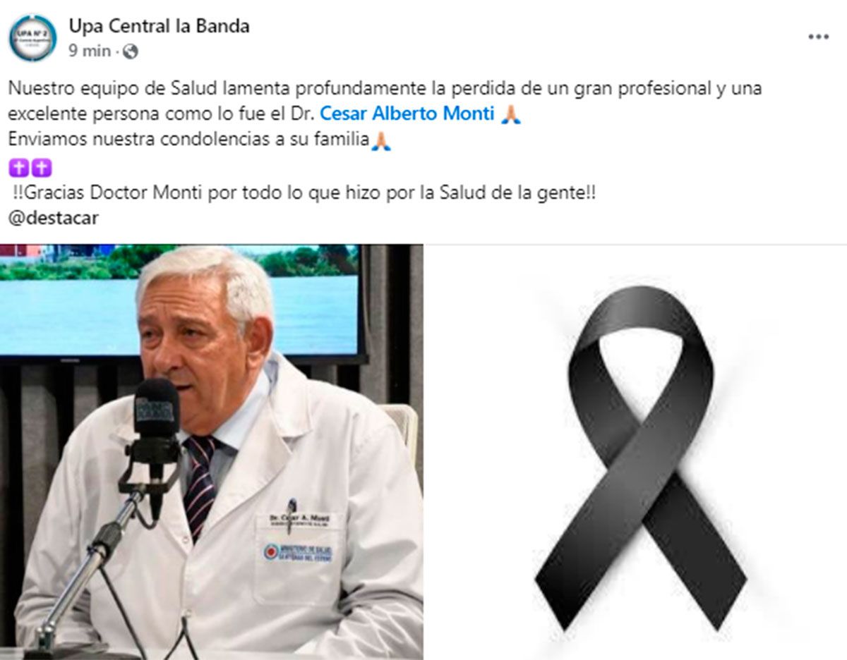 Monti, cuya destacada labor en el sistema de salud provincial lo convirtió en una figura respetada y admirada, recibió innumerables muestras de afecto y reconocimiento tras conocerse la triste noticia.