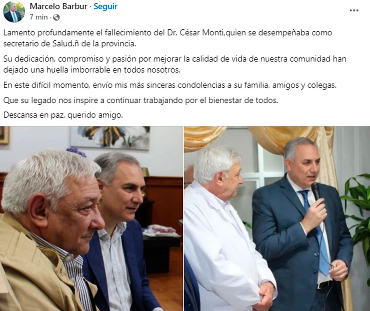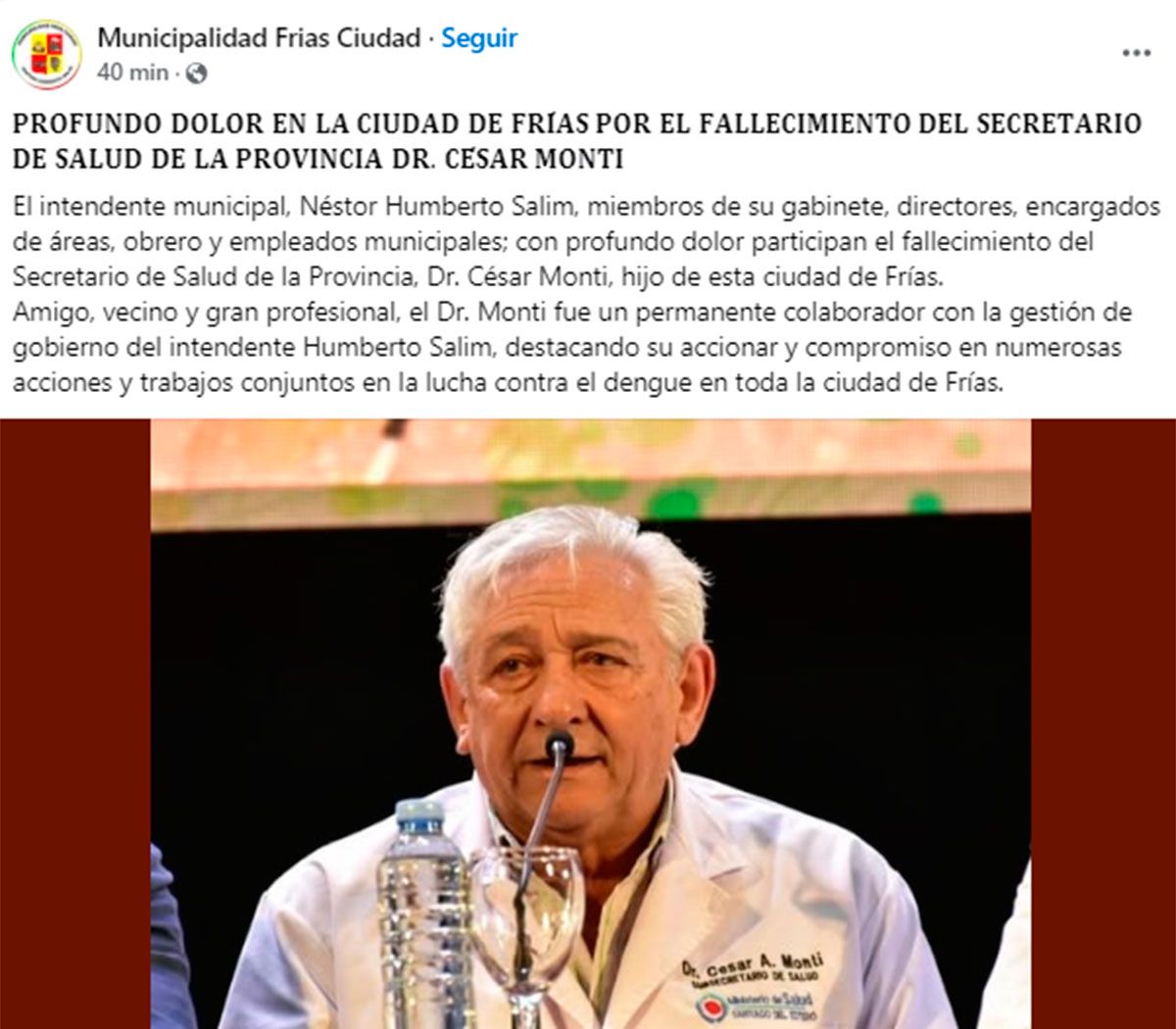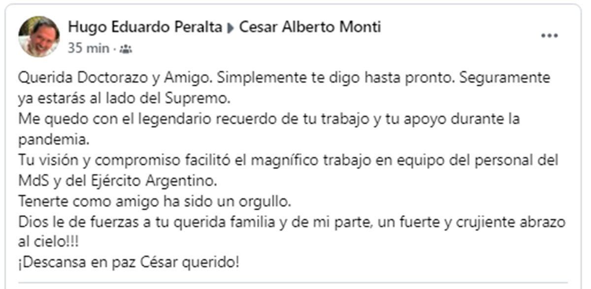 Monti, cuya destacada labor en el sistema de salud provincial lo convirtió en una figura respetada y admirada, recibió innumerables muestras de afecto y reconocimiento tras conocerse la triste noticia.