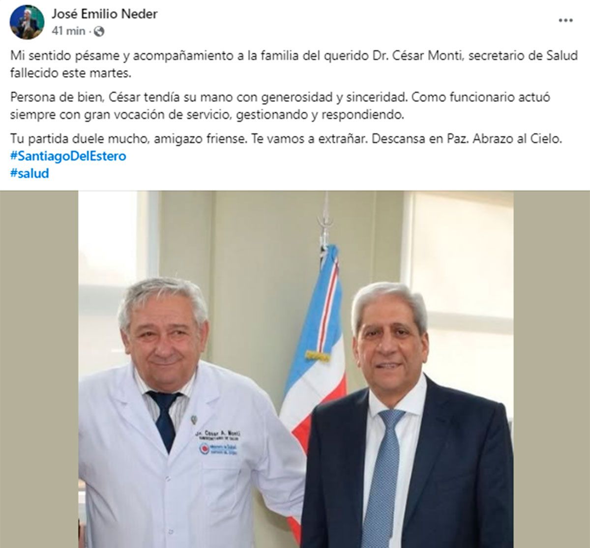 La comunidad santiagueña se une en oración y solidaridad con la familia del Dr. Monti, quien será recordado no solo por su capacidad profesional, sino también por su calidez humana.