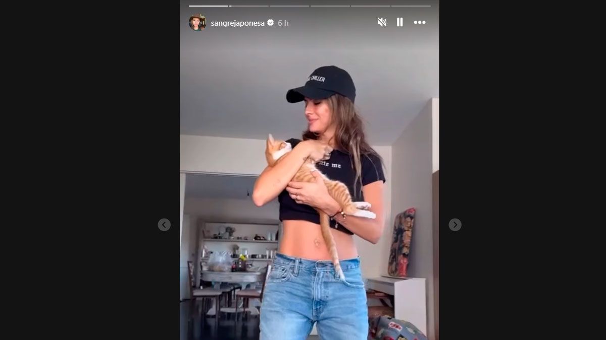En el mismo se la puede ver en el living de un departamento, con un jeans, una remera de color negro y una gorra estilo béisbol. En brazos tiene al gato que adoptó a fines del año pasado y al cual nombró Coco. En el clip que compartió en sus stories se la puede ver acunando al pequeño felino con el mismo gesto que si fuera un bebé. "¿Cómo vas a tener esta pancita? Ay, tengo un bebé, te amo. ¿Por qué la maldad? No aguanta la ternura", se la escucha decir a la cantante de “Corazón de cartón” a la persona que se encuentra grabando el video cuando el gatito le muerde la mano.