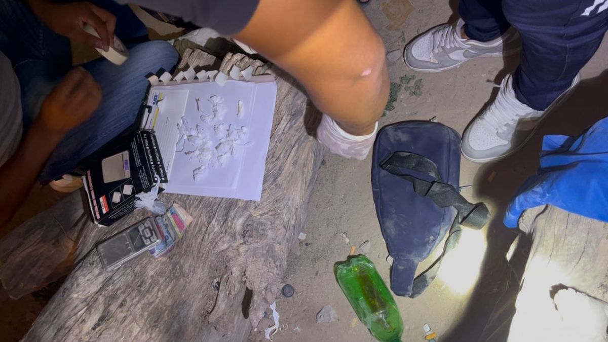 Acosta, domiciliado en el mismo barrio, se encontraba a bordo de una moto Honda CG 150cc y llevaba consigo una riñonera negra. Al ser interceptado, mostró un comportamiento nervioso y agresivo, lo que motivó la intervención de un supervisor y personal de la División Drogas Peligrosas. Durante la requisa, realizada en presencia de un testigo, se encontraron 21 envoltorios de cocaína (3,1 g), un envoltorio de marihuana (2,3 g) y una balanza de precisión.