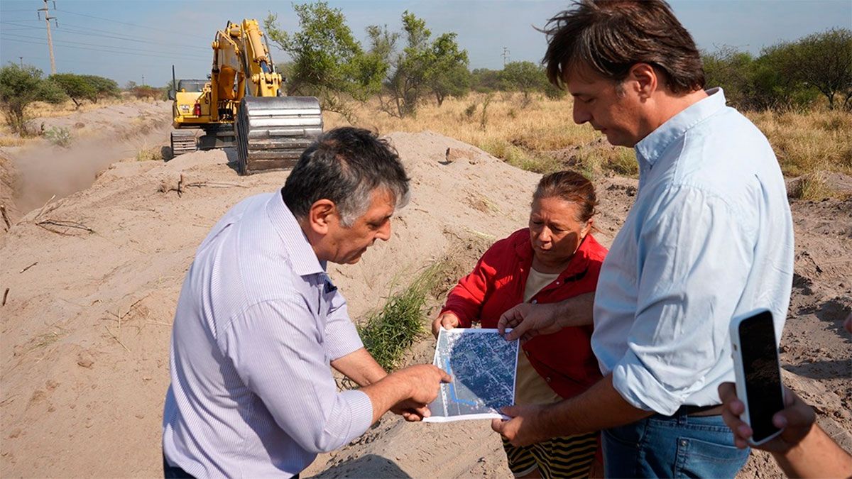 Durante la visita, el jefe comunal destacó: “Estamos trabajando en este importante desagüe pluvial que tendrá aproximadamente 950 metros y beneficiará a los vecinos del barrio Avenida, así como también a los de los barrios San Fernando, San Javier y 9 de Julio. La obra se conectará con el cordón cuneta recientemente terminado en la calle Arribeño, permitiendo que el agua de todo este sector sea canalizada de manera eficiente”.