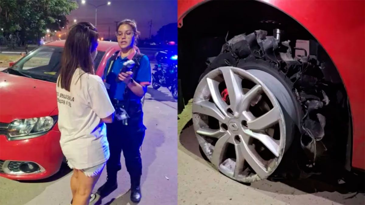 Una vez que la chica se bajó del vehículo, constataron que el auto estaba dañado por la maniobra que había realizado. Incluso, llegó a perder una de las ruedas durante la huida.