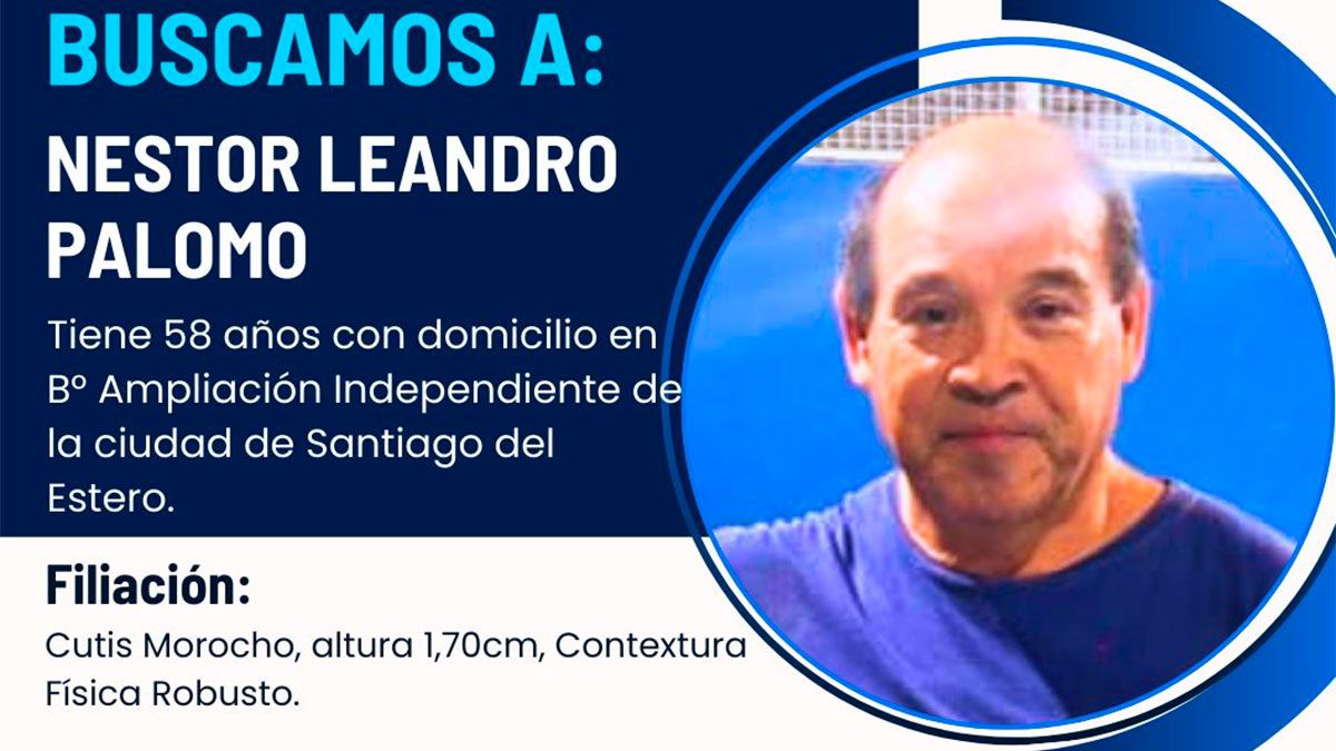 Efectivos policiales de la División Búsqueda de Personas de la ciudad capital están trabajando para localizar a Néstor Leandro Palomo, de 58 años, quien reside en el barrio Ampliación Independencia de Santiago del Estero.