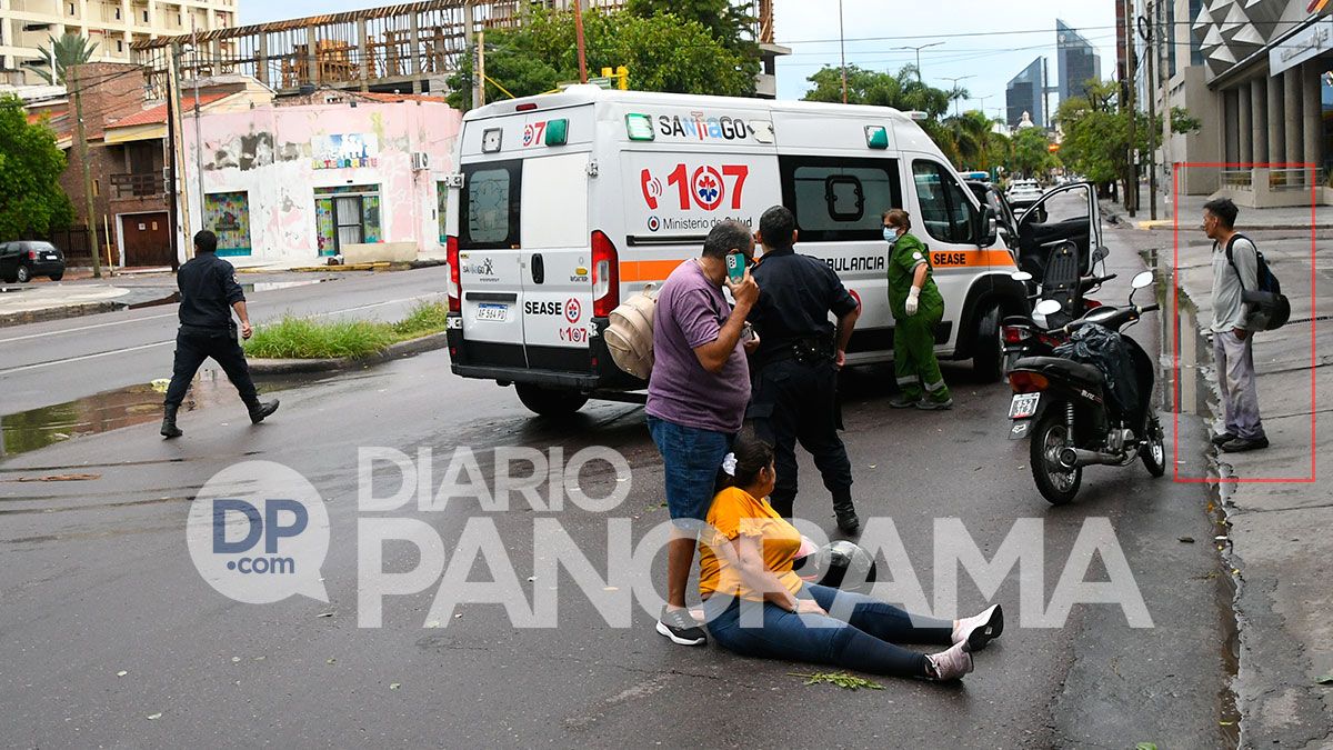 La mujer cayó de espaldas al pavimento, según manifestaron testigos. Fue trasladada por el SEASE al hospital Regional. Test de alcoholemia para el otro conductor.