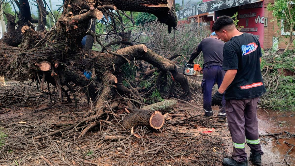 Realizaron los primeros trabajos de relevamiento de los daños ocasionados por los fuertes vientos y la abundante lluvia, que afectaron a diferentes sectores de la ciudad, los cuales fueron inmediatamente asistidos.