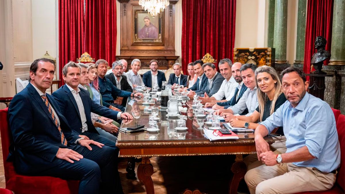 El presidente de la Cámara de Diputados, Martín Menem, recibió a los bloques dialoguistas en el Congreso. El objetivo de la reunión fue lograr consensos para que el oficialismo consiga aprobar el proyecto para la eliminación de las PASO y Ficha Limpia.