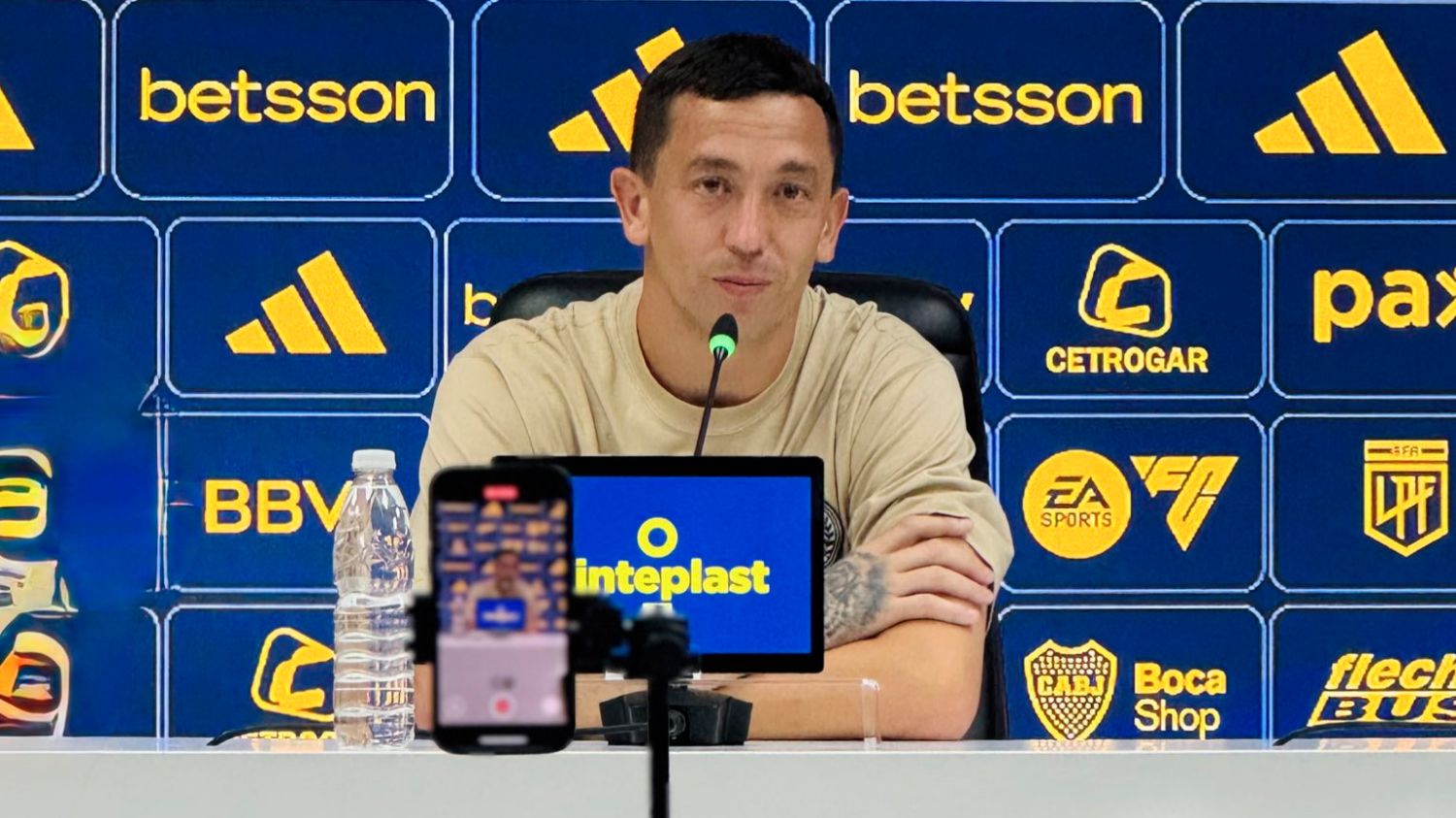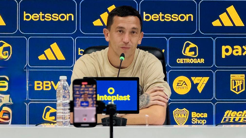 El arquero habló ante los medios en conferencia de prensa, acompañado por el presidente Juan Román Riquelme.