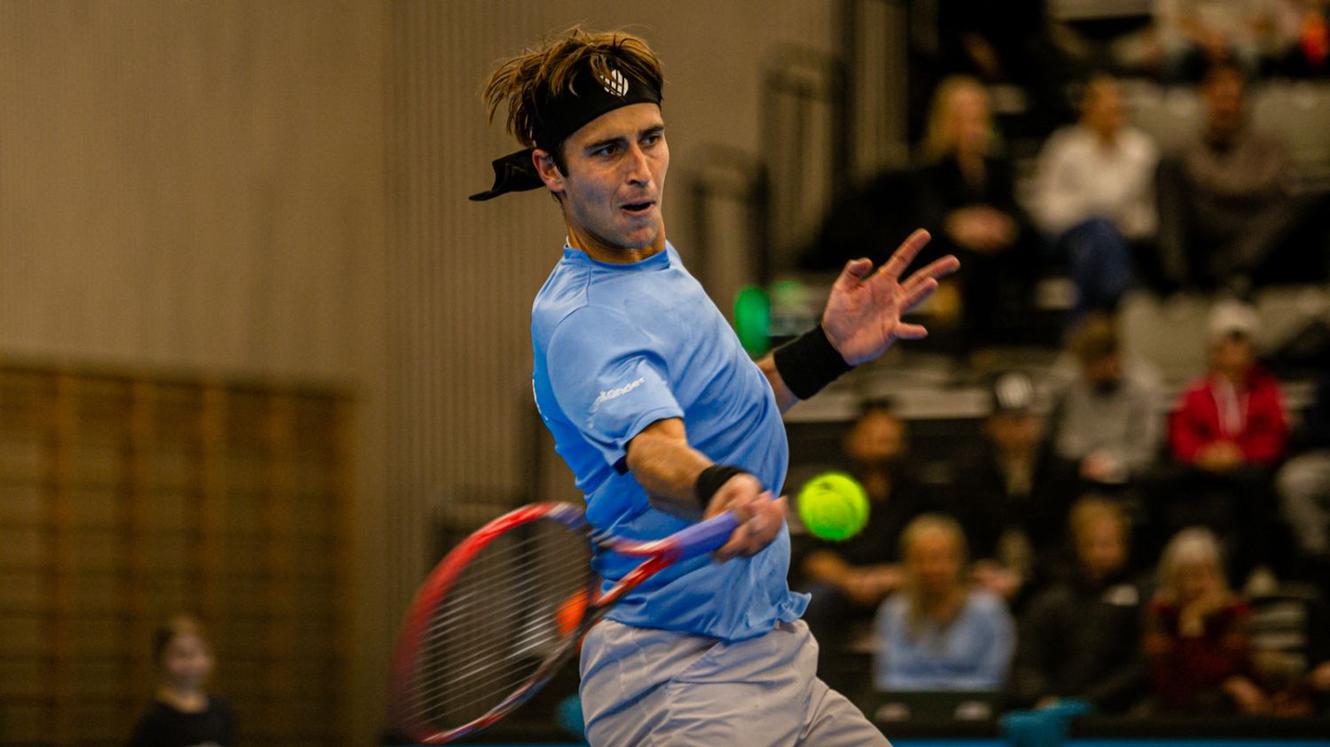 Etcheverry abrió la serie con una trabajada victoria ante Budkov Kjaer. El platense se impuso en un apretado primer set por 7-5, aunque su rival reaccionó en el segundo y lo ganó 6-2. En el tercer parcial, Etcheverry cerró el duelo con un ajustado 7-6 (5), celebrando con evidente desgaste físico y mental.