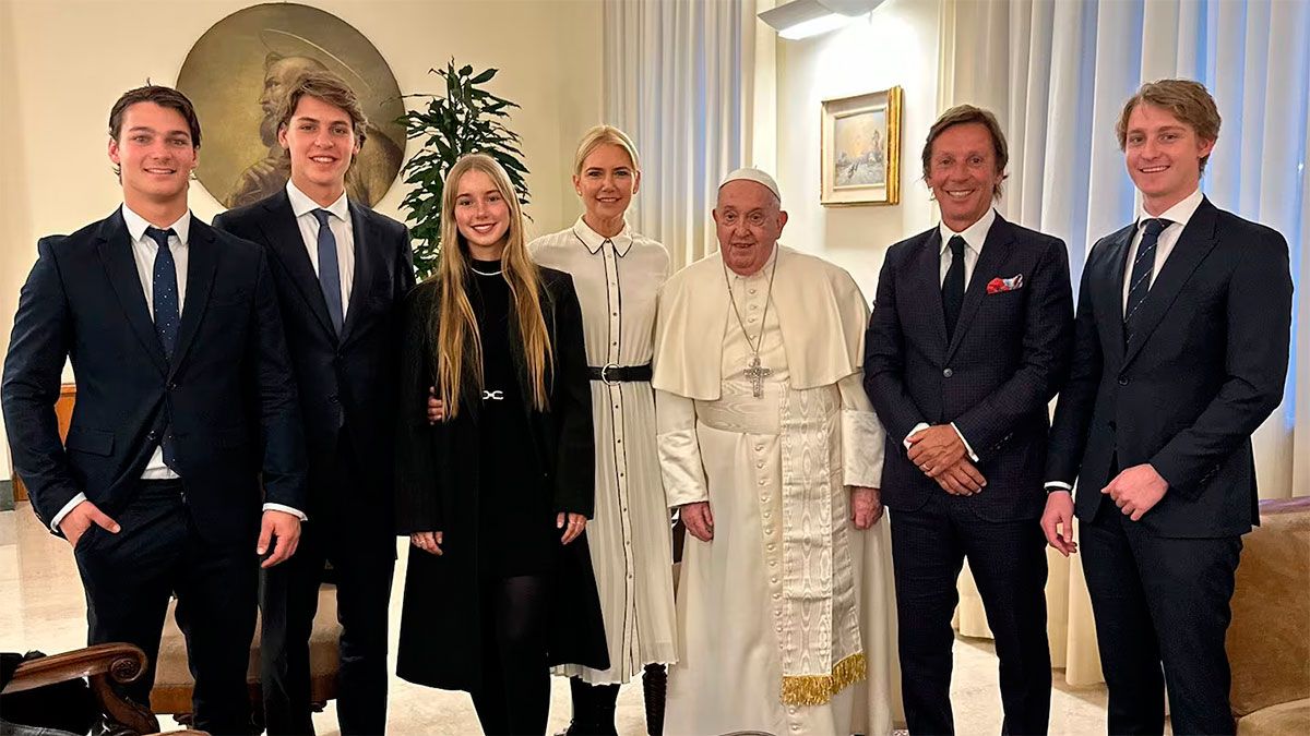 La modelo tuvo una audiencia con el Papa, a la que también asistieron su esposo Alejandro Gravier y sus hijos Balthazar, Tiziano, Benicio y Taína.