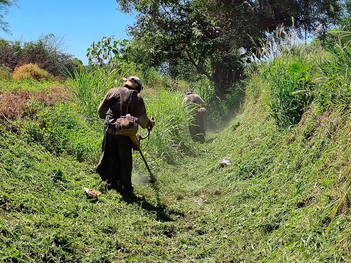 El municipio de la Capital del Agro, a través de la Dirección de Producción y Espacios verdes, desarrolla un cronograma semanal de tareas que consisten en desmalezado y limpieza de desagües pluviales a cielo abierto.