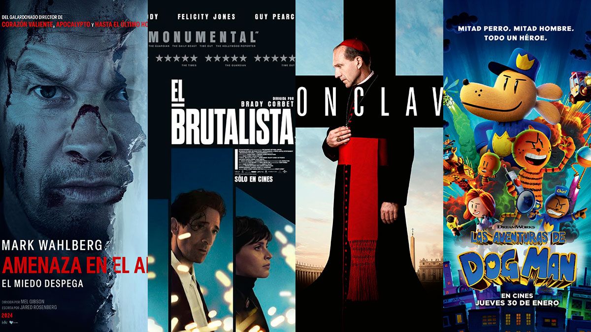 Conclave y El brutalista, son las propuestas dramáticas de esta semana, dos películas aclamadas por la crítica que cuentan con Ralph Finnes y Adrien Brody en los papeles principales, respectivamente. A ellas, se suman la animación Las aventuras de Dog Man y la cinta de acción Amenaza en al aire, dirigida por Mel Gibson y protagonizada por Mark Wahlberg.