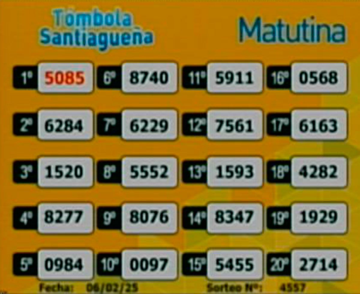 Este jueves 6 de febrero del 2025, como todos los días, se llevó a cabo un nuevo sorteo de la Tómbola Santiagueña.