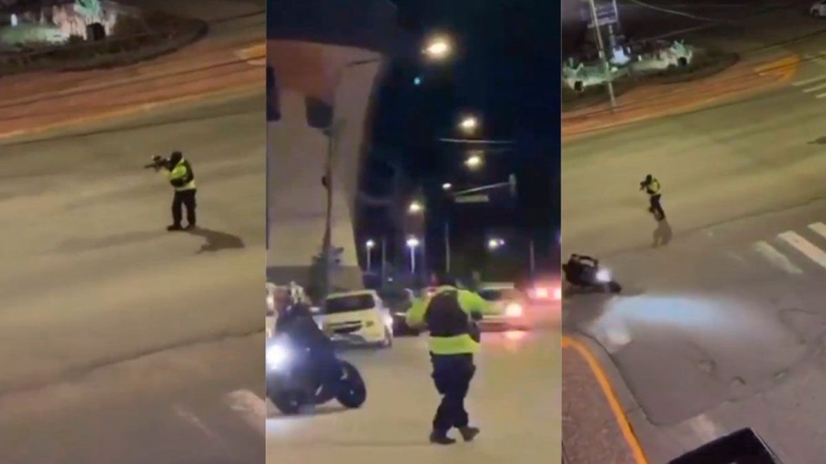 La avenida Maipú, en la ciudad de Ushuaia, fue el escenario de un llamativo control de tránsito que en las últimas horas se viralizó en redes sociales. En el video que circuló puede verse a agentes de policía portando armas de gran tamaño e intentando detener a algunos motociclistas. Los conductores, los esquivan. Entonces, los policías levantan sus armas. Y disparan. Pero no hacen daño a los motociclistas; sólo los marcan. Como en el paintball.