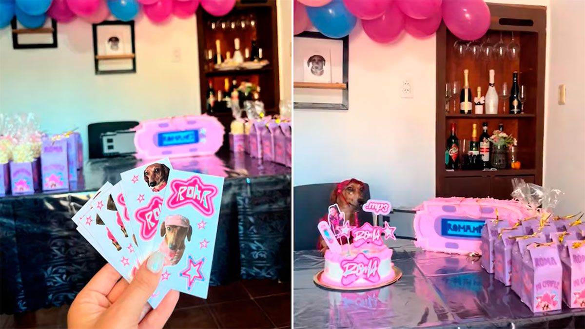 Una celebración inusual llamó la atención de miles de usuarios en redes sociales: el cumpleaños de una perra salchicha llamada Roma, organizado con una temática inspirada en la cantante argentina Emilia Mernes.