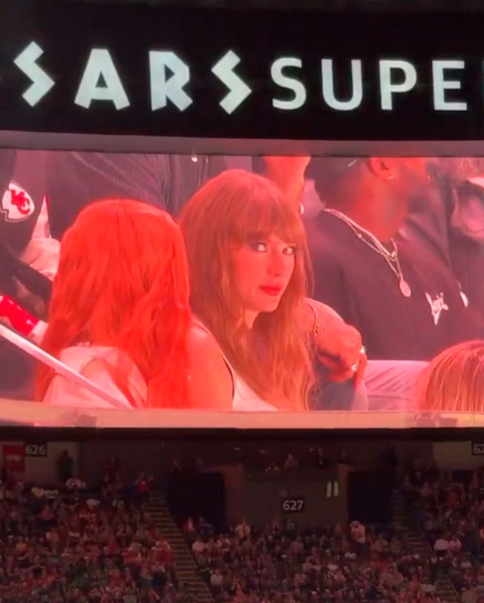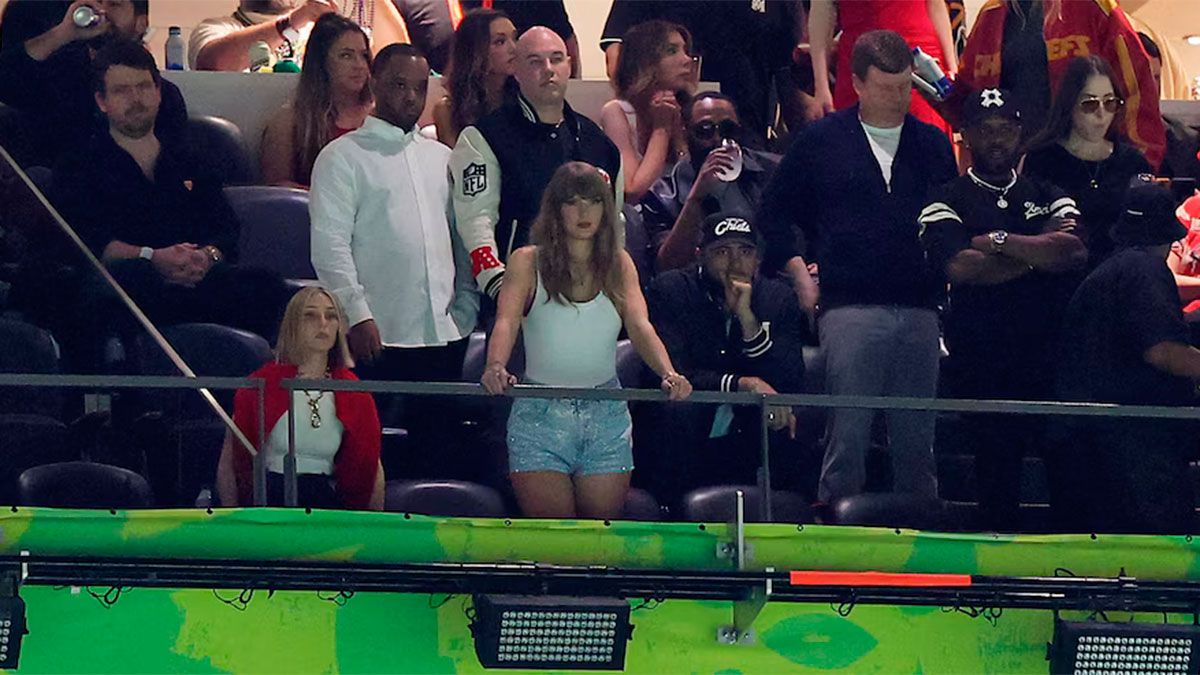 Otra de las presencias estelares de la noche fue la de Taylor Swift, pareja de Travis Kelce, figura del equipo de Kansas. En la previa a la gran final, la cantante estadounidense fue enfocada por una de las cámaras y apareció en la pantalla del Caesars Superdome.