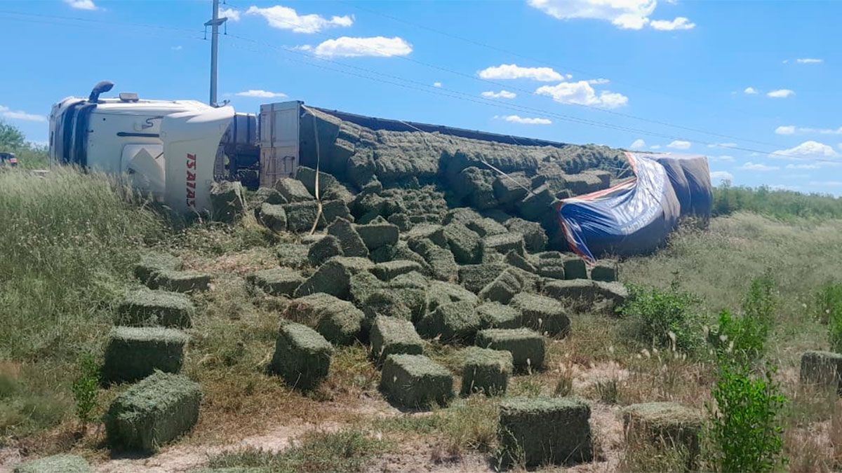 El conductor identificado como Hugo Alberto Gallo de 48 años, indicó que provenía desde la ciudad de Fernández con carga de alfalfa y tenía destino la provincia de Buenos Aires, cuando producto del daño de los neumáticos del eje central le hizo perder estabilidad y el control del vehículo, despistandose y terminar volcando.