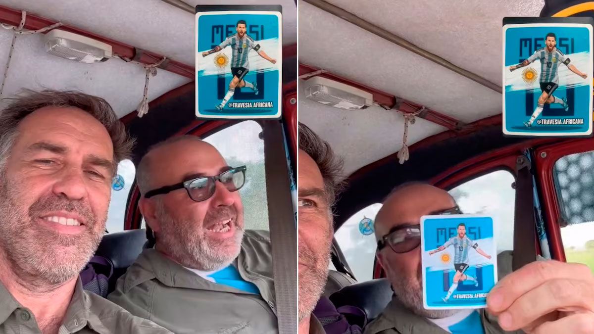 “A cada policía que nos para, que no sabe bien dónde queda Argentina, le entregamos un presente, que es ese sticker tuyo”, cuenta Martin. Y Ricardo concluye, con humor: “Nos has salvado Lionel, otra vez”. La estrategia, según relatan, les permitió pasar por varios puntos de control sin inconvenientes.