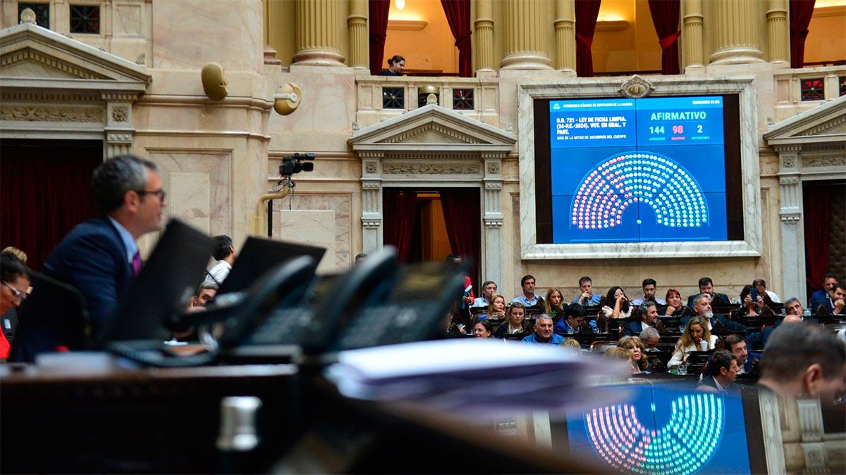 El proyecto de Ficha Limpia fue aprobado en la Cámara de Diputados de la Nación con un total de 144 votos afirmativos, 98 negativos, 2 abstenciones y 13 ausentes. La iniciativa, que busca impedir que personas condenadas por delitos de corrupción accedan a cargos públicos, generó un amplio debate en el recinto y dividió a los legisladores.