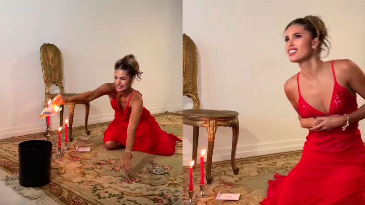 Tal como dejó ver en esos casi 15 segundos, Poggio estaba sentada sobre una alfombra mientras posaba con un vestido rojo. Además, la influencer sostenía una carta que encendió con el fuego que salía de una de las velas que estaba a su alrededor.