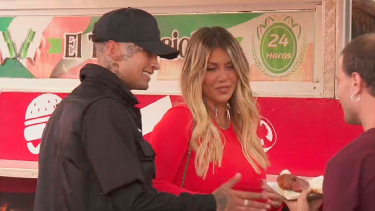 Elián Valenzuela lució un look total black con gorra y Wanda optó por un vestido colorado al cuerpo con espalda descubierta. El detalle fue que tal como se pudo ver en las imágenes, hubo food truck de choripán.