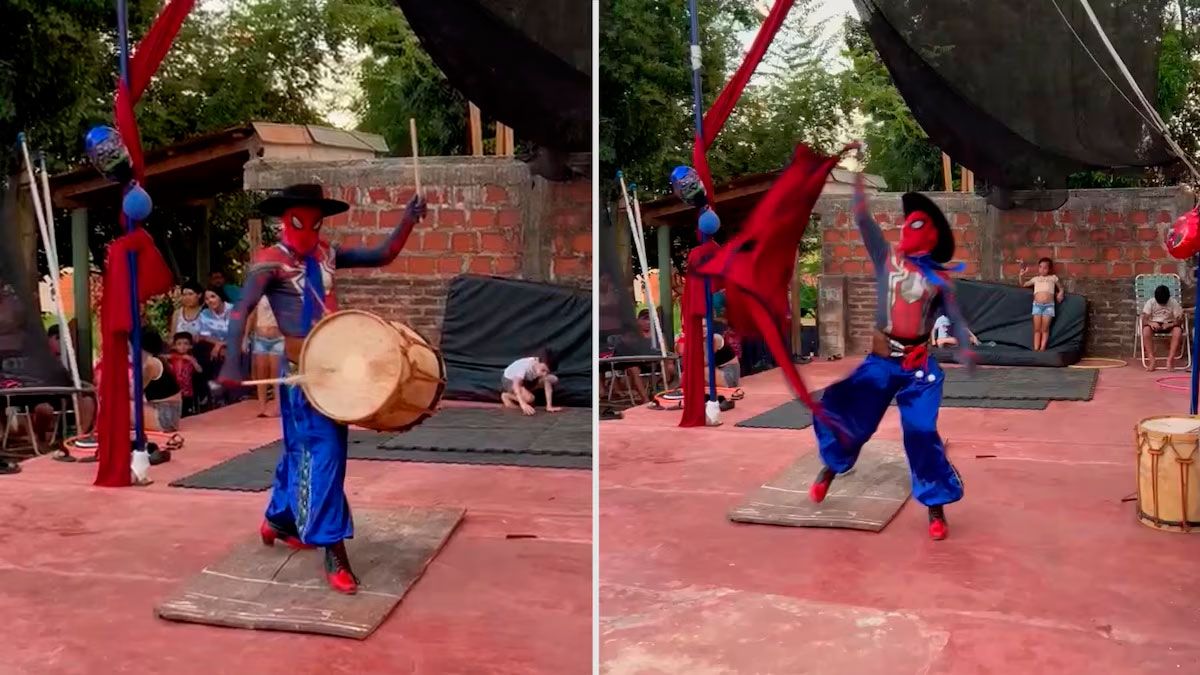 El video que fue publicado en la cuenta de Tiktok @spiderman.gaucho muestra como bailó y tocó el bombo al ritmo de “Amor Salvaje”, un clásico del grupo folklórico Los Nocheros. Se lo puede ver zapateando con destreza mientras los asistentes aplauden al compás de la música. Este espectáculo, que mezcla elementos de la cultura popular y la tradición argentina, ha sido calificado por los usuarios como una propuesta novedosa y entretenida, especialmente en el contexto de eventos infantiles.