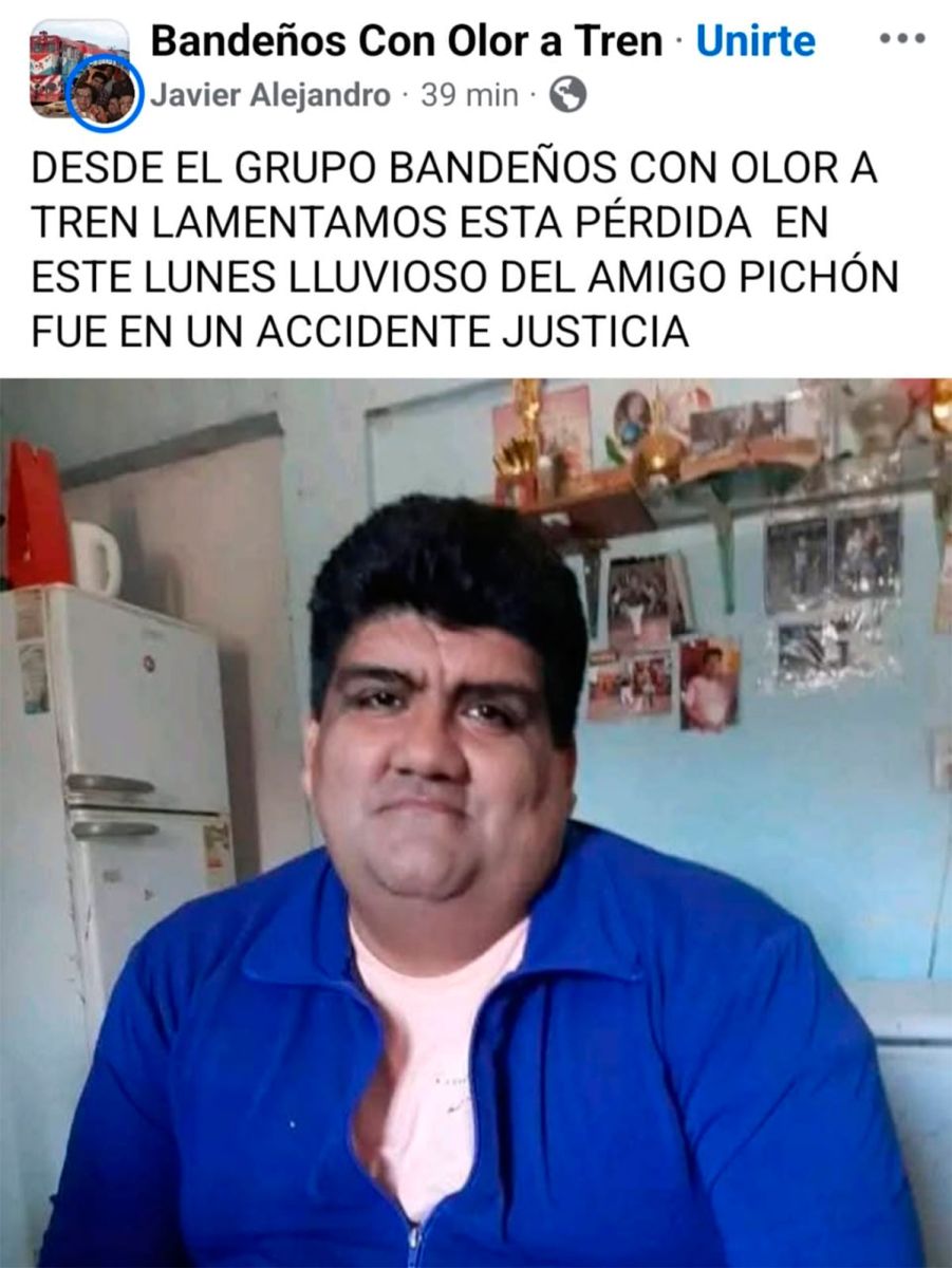 En diferentes publicaciones, la tristeza y el dolor se hicieron presentes. "Lamentamos esta pérdida, en este lunes lluvioso, del amigo Pichón. Fue un accidente. Justicia", expresaron en un mensaje de despedida miembros del grupo "Bandeños con olor a tren".