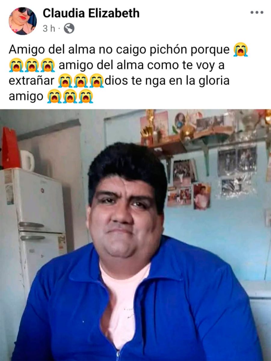 Otro amigo se despidió con angustia: "Amigo del alma, no caigo pichón. Por qué amigo del alma como. Te voy a extrañar. Dios te tenga en la gloria, amigo".