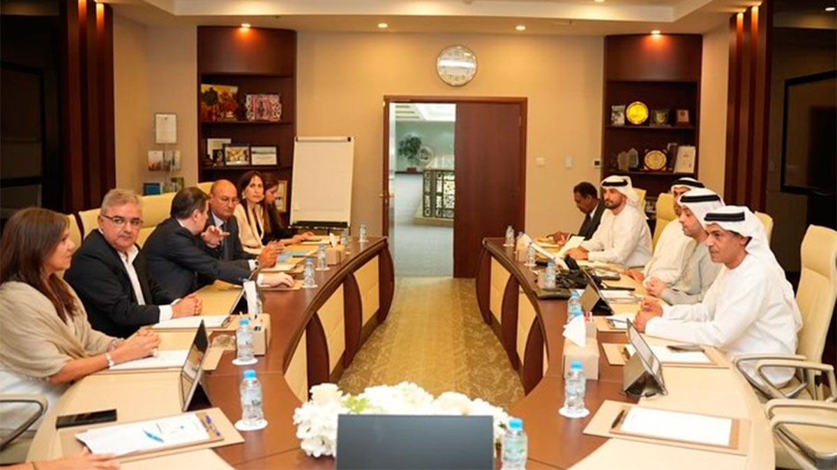 El encuentro se realizó en la sede de la entidad junto a Adel AlHosan, Khalil Almansoori y Rashed AlKaabi. Durante la reunión, Zamora y Jalil presentaron el proyecto basado en el informe del CFI sobre la Estrategia Logística Integrada para las diez provincias del Norte Grande.