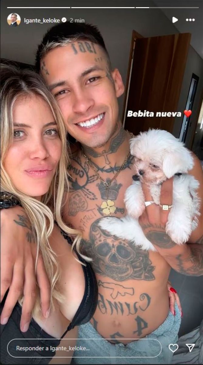 “Bebita nueva”, escribió el referente de la Cumbia 420 en sus historias de Instagram junto a una foto en la que se lo veía con su pareja sosteniendo un perrito blanco.